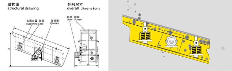 2、振動器采用軸承稀油潤滑、外置式塊偏心結(jié)構(gòu)。具有激振力大,軸承負荷小、溫度低,噪音小等特點。(軸承溫升小于35") 。