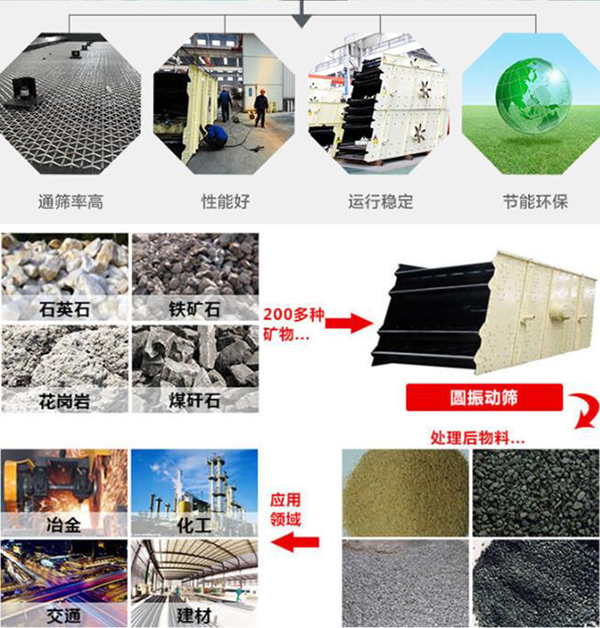 3060振動(dòng)篩圓振動(dòng)篩是一種新型振動(dòng)篩。圓振動(dòng)篩采用筒體式偏心軸激振器及偏塊調(diào)節(jié)振幅,物料篩淌線長(zhǎng),篩分規(guī)格多,具有結(jié)構(gòu)可靠、激振力強(qiáng)、篩分效率高、振動(dòng)噪音小、堅(jiān)固耐用、維修方便、使用***等特點(diǎn),該振動(dòng)篩廣泛應(yīng)用于礦山、建材、交通、能源、化工等行業(yè)的產(chǎn)品分級(jí)。