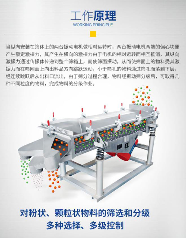 szf直線振動篩及DZS系列多層直線振動篩,是利用振動電機激振的原理,在其作用下,支撐在四個壓縮彈簧上的篩體產生連續(xù)的直線振動力,因而使給入物料在篩面上做連續(xù)的拋射運動。在與篩面相遇的過程中,使小于篩孔的物料通過篩網,從而達到分級目的很大篩分面積。